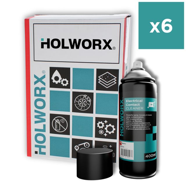 Professional Holworx Electrical Cleaner 400ml Box of 6. Fast-evaporating, residue-free formula for cleaning switches, circuit boards, and electrical components. Ideal contact cleaner for industrial machinery and plant equipment.